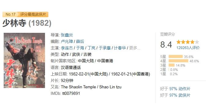 她舉了一個例子:上世紀八九十年代,《少林寺》等頗受觀眾喜愛的武俠片,基本都有以下特點:“硬橋硬馬”的打戲較多,往往通過敘事來營造一個武俠宇宙,也就是“江湖”,彼時武俠片熱度很高,《少林寺》更是引發(fā)“萬人空巷”的觀影盛況。