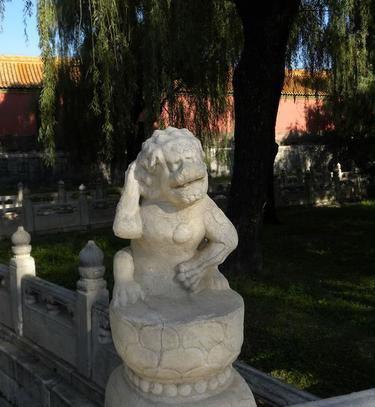 故宮有座斷虹橋,雖處在非開放區(qū),但卻因橋上萌態(tài)十足的石獅子聲名遠(yuǎn)播。其中一只“護(hù)襠萌獅”其照片去年更為網(wǎng)友熱傳。只見它一爪摸著后腦勺,一爪護(hù)在襠部,嘴巴微張,雖然經(jīng)過(guò)日久風(fēng)吹,多少有些面目模糊,但抓耳撓腮、欲說(shuō)還休的“憋屈”樣依然萌態(tài)十足。