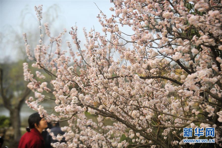 3月6日,游客在揚(yáng)州瘦西湖賞花。隨著氣溫升高,江蘇揚(yáng)州市瘦西湖景區(qū)楊柳吐綠,繁花似錦,吸引許多中外游客前來踏春賞花。 新華社發(fā)(孟德龍 攝)