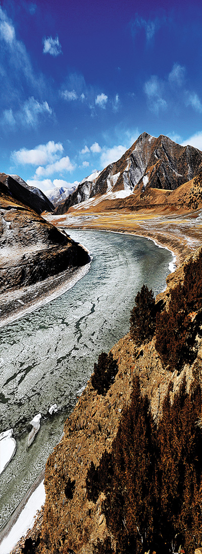 由于地處高原,通天河的身旁除了它滋養(yǎng)過(guò)的子民,便極少再有外人來(lái)此,因而此地的生態(tài)環(huán)境還保持著原來(lái)的模樣。走在河邊向前望去,遠(yuǎn)處是崇山峻嶺,近處是大河奔騰,無(wú)限的美景讓人感到無(wú)比愜意。彎下腰來(lái)坐在岸邊,靜靜地看著河水流淌,眼前的景象與《西游記》中的描寫有些相似,渾濁的河水翻滾著浪花。在河道中疾行而過(guò),不禁讓人心驚膽戰(zhàn)。