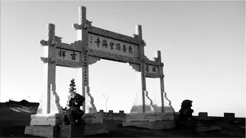 望海峰的盛景在于東觀日出。由于東面再無大山阻擋,所以人的目力可東眺非常遙遠(yuǎn)的地方。峰頂曾建有望海樓,專門為觀景而建??上昃靡褮В?985年重建,為望海寺,內(nèi)供聰明文殊。