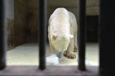 一般氣溫達(dá)到35度以上時,動物園飼養(yǎng)部門還將向北極熊、棕熊、小熊貓、金絲猴、大猩猩等重要場館運(yùn)送冰塊,每塊冰大概凈重20-30斤左右,需要提前三天在冰庫中冷凍,一次性送冰8-10塊。同時為北極熊館配備冰箱,飼養(yǎng)員可隨時冷凍冰塊給動物食用。