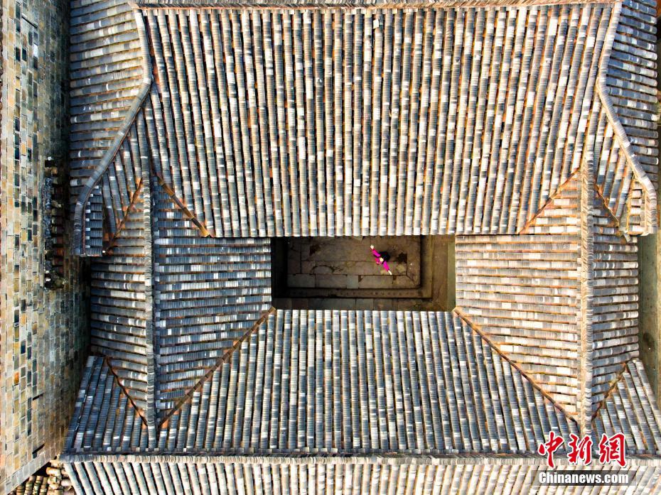 12月10日,航拍位于江西金溪縣有著600多年歷史的中國歷史文化名村、中國傳統村落竹橋古村,俯瞰全村,形似一柄巨扇。該村現保存有明代所建民居8幢,明代祠堂1幢,其余為清代建筑,青磚灰瓦,樸實素雅,為贛派建筑最典型的代表。村前溪水長流,良田萬頃,村后茂林修竹,鳥鳴樹幽,身歷其境,如入畫中。傅建斌 攝