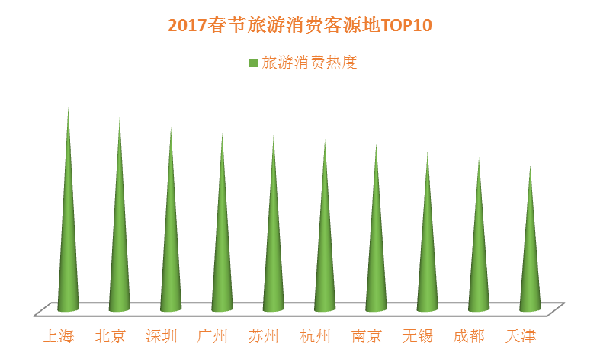 整體的客源分布方面,上海、北京、深圳、廣州、蘇州、杭州、南京、無錫、成都、天津十個城市的春節(jié)出游人數(shù)最多(截止《報告》發(fā)布時的預訂數(shù)據(jù))。