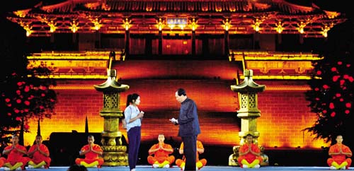 作為客場(chǎng)競(jìng)演城市,我市節(jié)目精心策劃,抓住了城市的靈魂,以“心靈之舟”為主題思想,多角度展示了我市的文化旅游特色。在第一階段展示中,高清影視資料向觀眾推介了五臺(tái)山、雁門(mén)關(guān)等大美山河,吊足了觀眾的味口。4名原生態(tài)歌手和20名小朋友齊唱《美麗忻州心靈之舟》,營(yíng)造出寧?kù)o的開(kāi)場(chǎng)氛圍。緊接著,毛澤東特型演員張瑞奇的出現(xiàn),將全場(chǎng)帶入第一個(gè)高潮,毛澤東與五臺(tái)山的歷史淵源點(diǎn)燃紅色激情,我市既展示出了名山秀水的妖嬈,又漂亮地打出了紅色旅游這張牌。宣講“忻州,我們的心靈之舟”這一主題的同時(shí),更是將凈化心靈、激蕩心靈、洗滌心靈、愉悅心靈、陶冶心靈這5大內(nèi)容融入到節(jié)目中,完整地傳達(dá)“我們的忻州,是蕩滌人們心靈的忻州,是放飛人們夢(mèng)想的忻州”這一主題思想。第一階段競(jìng)演結(jié)束,鳳凰網(wǎng)點(diǎn)評(píng)嘉賓將支持票投給了忻州,因?yàn)樾弥菔莻€(gè)令她動(dòng)心的地方。就連著名表演藝術(shù)家馬德華先生也被忻州的名山秀水所感染,他激情點(diǎn)評(píng):“忻州令人魂?duì)繅?mèng)繞?!眻D為市委常委、常務(wù)副市長(zhǎng)趙志堅(jiān)傾情講述,撼動(dòng)全場(chǎng)第二階段的展演,圍繞“產(chǎn)業(yè)轉(zhuǎn)型升級(jí)和旅游脫貧致富”,我市以建設(shè)蘆芽山為故事背景,蘆芽山掌門(mén)常洪睿講述了他致力打造智慧化旅游景區(qū)的故事。