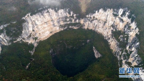 這是11月28日航拍的重慶奉節(jié)小寨天坑。小寨天坑位于重慶市奉節(jié)縣興隆鎮(zhèn)小寨村,坑深666米,是聞名中外的世界地質(zhì)奇觀。 新華社發(fā)