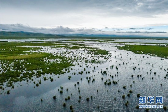 位于四川省阿壩藏族羌族自治州若爾蓋縣西北部的花湖生態(tài)旅游區(qū)(6月16日攝,無人機照片)。 新華社記者 沈伯韓 攝