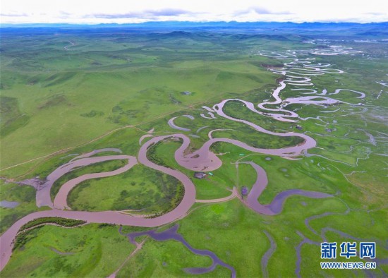 四川省阿壩藏族羌族自治州若爾蓋縣的熱曲河風光(6月17日攝,無人機照片)。 新華社記者 劉坤 攝