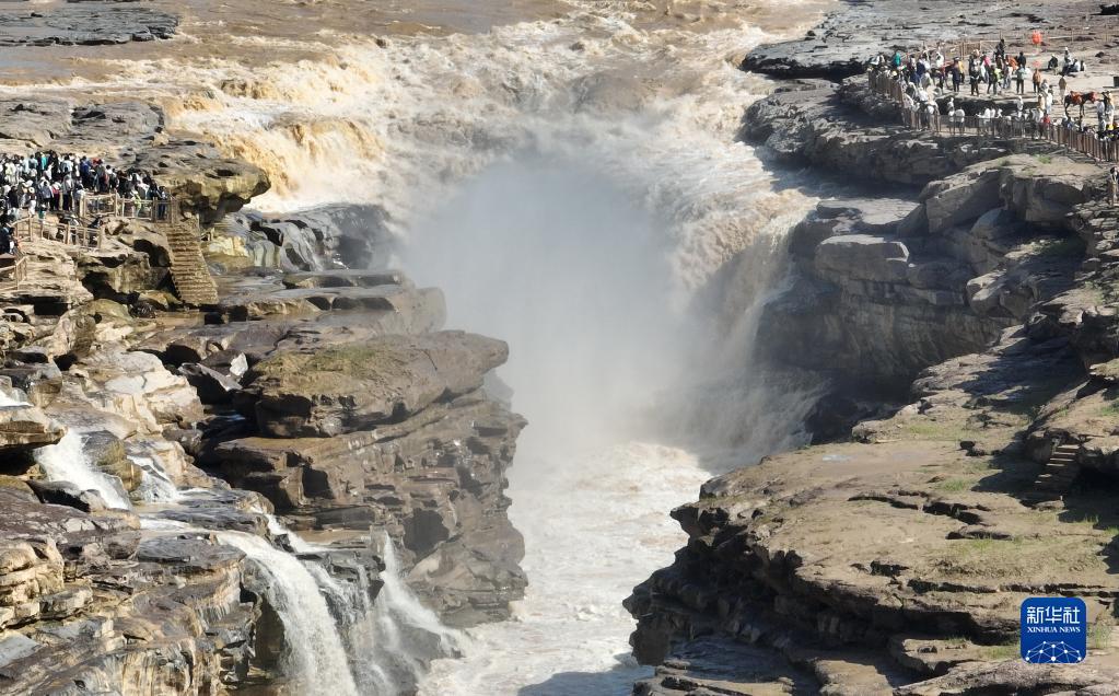 暑期,眾多游客來到位于陜西宜川縣和山西吉縣交界處的黃河壺口瀑布游覽,領(lǐng)略壺口瀑布美景。