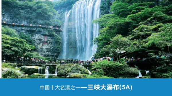 宜昌有國(guó)家A級(jí)景區(qū)63處,其中5A級(jí)景區(qū)4處,4A級(jí)景區(qū)23處,有全世界唯一可全程乘船游覽的大峽谷—長(zhǎng)江三峽;有全世界最大的水力發(fā)電站—三峽大壩;有以長(zhǎng)江三峽第一關(guān)著稱的南津關(guān);有全國(guó)三大關(guān)廟之一的當(dāng)陽(yáng)關(guān)陵景區(qū);有長(zhǎng)江三峽新十景之首的三峽人家景區(qū);有中國(guó)土家族發(fā)祥地—清江畫(huà)廊景區(qū);有中國(guó)十大名瀑之一—三峽大瀑布;有中國(guó)自然水域漂流示范基地—朝天吼漂流等等。壯美的自然風(fēng)景,燦爛的巴楚文化,濃郁的民俗風(fēng)情,構(gòu)筑了宜昌旅游的美麗畫(huà)卷。