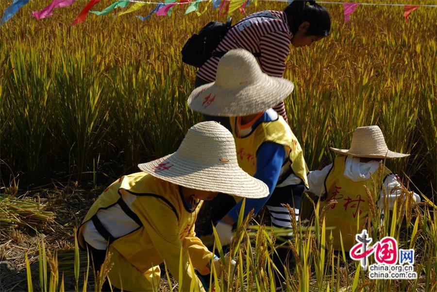 香村的管家將草帽與鐮刀發(fā)放給孩子們,再由經(jīng)驗(yàn)頗豐的伯伯示范,再到實(shí)操,一場歡樂的割稻子活動在田間展開。參與勞作,真切體會那句“粒粒皆辛苦”,在割稻子現(xiàn)場,也能感受到大人們也躍躍欲試,“這邊,這樣割,不對,不對,哎呀……我來”略顯著急的“指揮”著孩子,或許,這樣的場景也帶給家長們重回童年無憂時光的快樂。