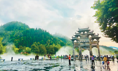 西遞景區(qū)牌樓廣場(chǎng)雨后美景。西遞鎮(zhèn)政府供圖