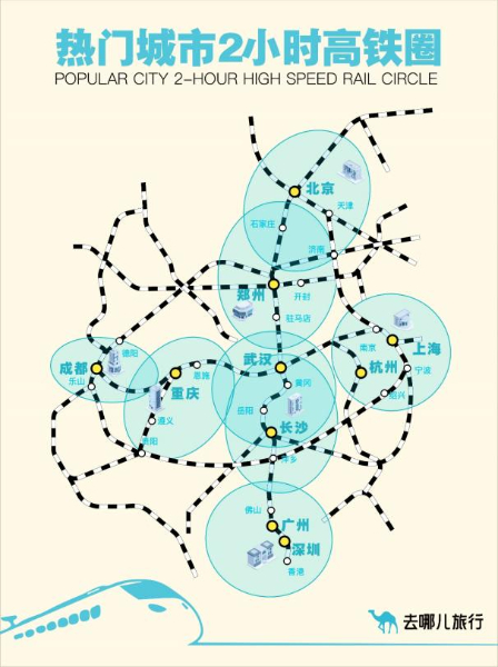 從去哪兒火車票預(yù)約情況來(lái)看,2小時(shí)高鐵圈內(nèi)仍是旅客出游的主要目的地。北京2小時(shí)高鐵圈內(nèi),熱門目的地為天津、濟(jì)南、石家莊、秦皇島、大同;上海2小時(shí)高鐵圈,熱門目的地為杭州、蘇州、南京、湖州、寧波。