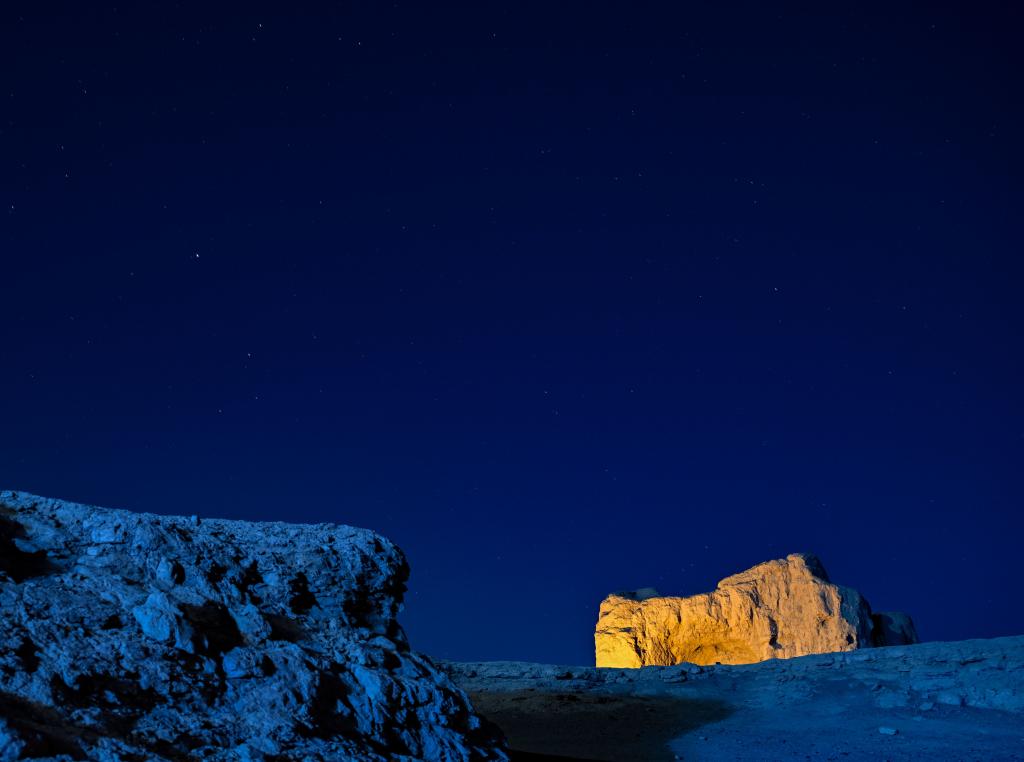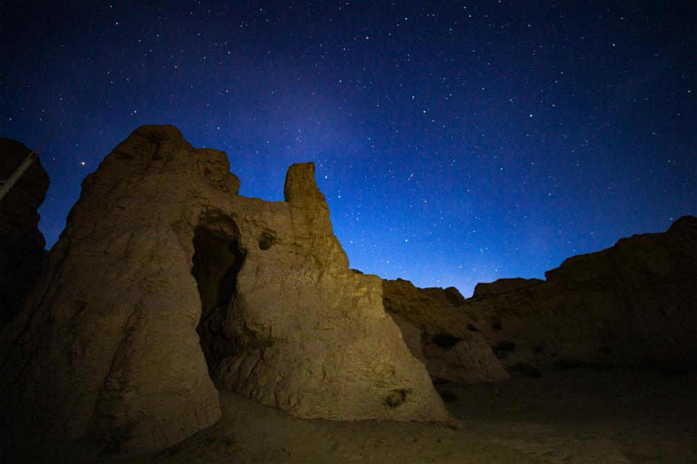 這是8月18日夜拍攝的交河故城。新華社記者 陳朔 攝 “人們常說,萬(wàn)丈高樓平地起,但這座建在近30米高臺(tái)地上的故城不同,它是一座向地下掏挖出來(lái)的城市,猶如一件巨大的生土雕刻藝術(shù)品?!敝v解員古麗尼格·克力木說,古人在地面事先規(guī)劃好建筑物的布局,確定了墻壁位置后,把墻內(nèi)外的土挖去,等豎好墻,再挖出房間。 吐魯番市文物局交河故城文管所所長(zhǎng)王建東介紹,這種“壓地起凸法”與陜甘寧等地傳統(tǒng)的窯洞開鑿方式有一定關(guān)聯(lián),豐富的建筑技法展現(xiàn)了古代西域與中原地區(qū)建筑技藝和城市文化的交流。 夕陽(yáng)余暉中,一片片斷壁殘?jiān)橙胙酆?,依稀能夠想象到,現(xiàn)在被譽(yù)為“世界上最完美的廢墟”的交河故城,當(dāng)年房屋鱗次櫛比、街市熙攘的場(chǎng)景。