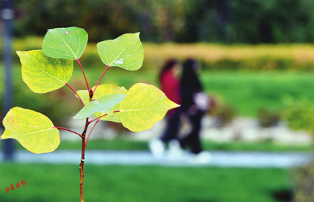 4.雙塔掩映在花境微景觀中。