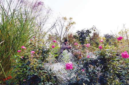 7.游客在花境微景觀中休息、打卡。