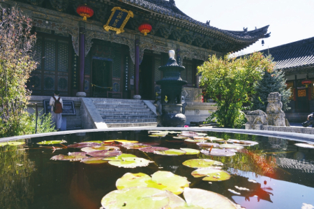五臺山佑國寺始建于元代,被譽(yù)為“現(xiàn)代石雕藝術(shù)寶庫”,圖為供奉釋迦牟尼的大雄寶殿。