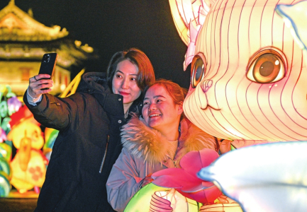 造型別致的花燈,吸引游客紛紛掏出手機留影。
