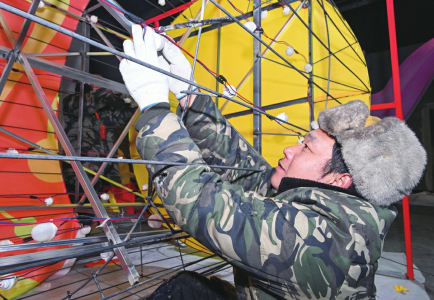 工作人員在巡查花燈電路,確保電力運行穩(wěn)定。