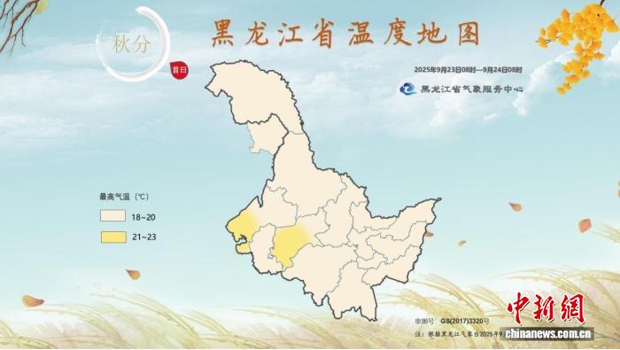 2025年“秋分首日”黑龍江省溫度地圖(2025年9月23日8時至24日8時)。 黑龍江省氣象局供圖