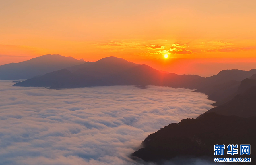 曙光初照,云海翻騰。近日,安徽省池州市石臺(tái)縣仙寓山景區(qū)在晨光中展現(xiàn)出一幅壯麗的日出云海畫(huà)卷。萬(wàn)頃云濤在層巒疊嶂間奔涌流動(dòng),與朝霞金光交織成景,氣象萬(wàn)千,蔚為壯觀。(王帆 攝)