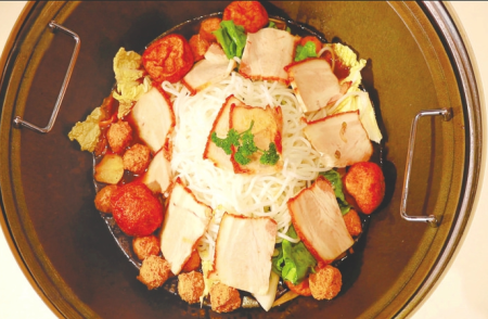 用料講究,特色配菜都要純手工制作。豆腐丸子、肉丸子、燒肉等食材經(jīng)烹飪后,盡顯治愈味道。熬制數(shù)小時(shí)的秘制高湯,搭配食客自選食材,經(jīng)鐵鍋燴制,呈現(xiàn)本真風(fēng)味。