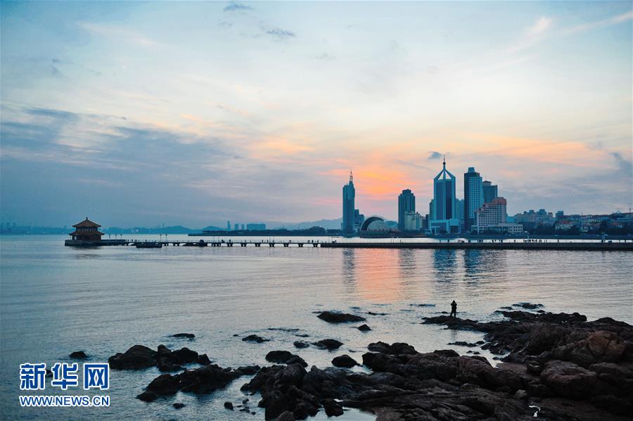 1月10日在青島棧橋景區(qū)黃昏景色。當(dāng)日,山東省青島市天氣晴好,黃昏時分沿海一帶景色迷人。 新華社發(fā)(王海濱 攝)