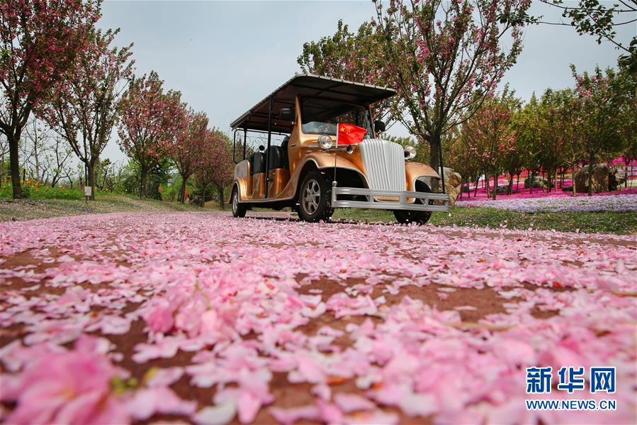 4月17日,一夜風雨過后,江蘇南通洲際綠博園櫻花大道上櫻花花瓣飄落一地。 新華社發(fā)(許叢軍 攝)