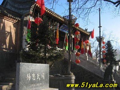 山西省代縣境內(nèi)有個(gè)名叫鹿蹄澗的村子,村中有座建于元代的楊忠武祠,人們通常稱它為楊令公祠或楊家祠堂。祠堂里保存著一些關(guān)于楊家將的比較真實(shí)的資料,可補(bǔ)史書(shū)的不足;也有許多生動(dòng)的塑像和畫像,可供游人憑吊和觀覽。