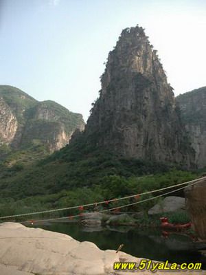 五指峰是五指峽的入口,形狀好像是伸出的五指。五指峽就是因?yàn)檫@座山峰而得名。五指峰集雄、奇、險(xiǎn)、幽、美于一體,不僅有刀削斧劈的懸崖,又有千奇百態(tài)的山石。古人曾如此描寫五指峰:“五朵危崖五指開,亭亭玉立絕塵埃,驚濤忽漲清泉水,是否翻云覆雨來”。