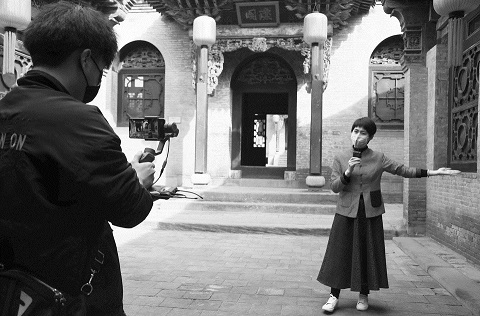 喬家大院景區(qū)導(dǎo)游化身為網(wǎng)絡(luò)主播,帶領(lǐng)觀眾在線探訪喬家大院百年歷史。本報(bào)記者 栗美霞 攝