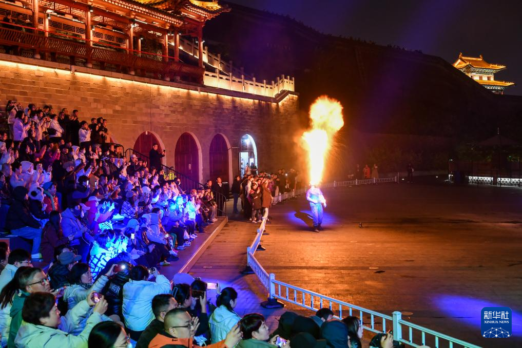 10月23日,游客在忻州古城內(nèi)觀看表演。
