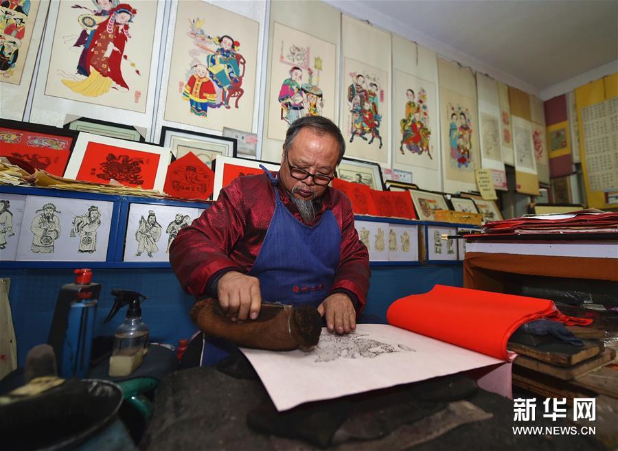 春節(jié)期間,山西省新絳縣的絳州木版年畫傳承人吳百鎖忙得不可開交,來購買“吉祥如意”“雄雞一唱天下白”等主題年畫的顧客絡(luò)繹不絕。山西省非物質(zhì)文化遺產(chǎn)絳州木版年畫發(fā)端于宋金,興盛于明清,從選料到雕刻再到上色都非常講究,一幅年畫的制作需要七八道精細(xì)工序。隨著時(shí)代的變遷,目前已鮮有專職雕刻、印制年畫的匠人。擁有嫻熟雕刻技藝的吳百鎖在傳承傳統(tǒng)工藝的基礎(chǔ)上,積極創(chuàng)作現(xiàn)代題材的作品,希望通過自己的創(chuàng)新讓更多少年兒童了解并愛上木版年畫,讓這門幾乎失傳的技藝綻放新的光彩。新華社記者 曹陽 攝