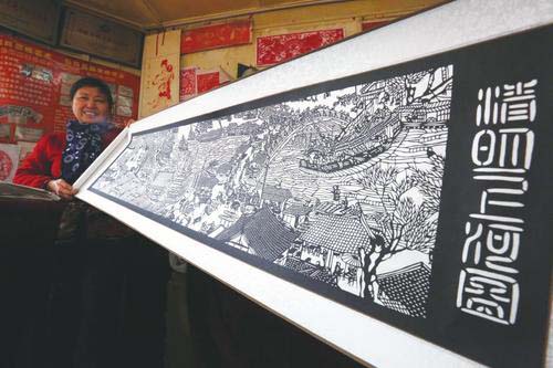 3月21日,記者走進(jìn)省藝術(shù)博物館辛愛英剪紙藝術(shù)工作室,和多年前采訪過的辛愛英相比,她依舊和藹可親,不同的是技藝更加精湛、手頭工作更加繁忙。