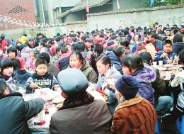 前來幫忙的親朋好友及村民們不說去“赴宴”或“喝酒”,也不說當(dāng)今的流行詞“趕飯局”,而是稱“上事筵”或“在事筵上了”;服務(wù)于“事筵”的行業(yè),如廚師、鼓樂班、出賃家具及算卦先生等,則叫“走事筵”“串事筵”。由此可見,事筵雖然也是“宴”,但太原人所稱呼的一個(gè)“事”字,就使得這場(chǎng)宴席和一般的吃喝不同,是有著重要性的內(nèi)容和目的。舉辦者并非閑情逸致地?cái)[席,而“上事筵”者也不是僅帶著一張嘴去混飯,雙方都是事筵中的參與者,都要在事筵中互動(dòng),并把事筵推向高潮?!笆麦邸倍致犐先?shí)在、鄭重,不但讓人認(rèn)可,且讓人人都有一份事筵上的職責(zé)感。