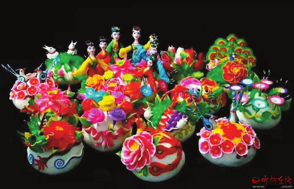 面塑是忻州民間文化最具生命力的工藝品之一,其制作過程十分復(fù)雜,包括和面、蒸面、調(diào)色、塑型等環(huán)節(jié)。制作時(shí)講究巧、潤、透、精,需要用刀、剪、板等工具,融實(shí)物、雕塑、繪畫、建筑、民間傳說和神話故事等于一體,通過虛實(shí)結(jié)合的藝術(shù)方式,制作出豐富多彩、栩栩如生的造型,給人以賞心悅目的藝術(shù)文化享受。