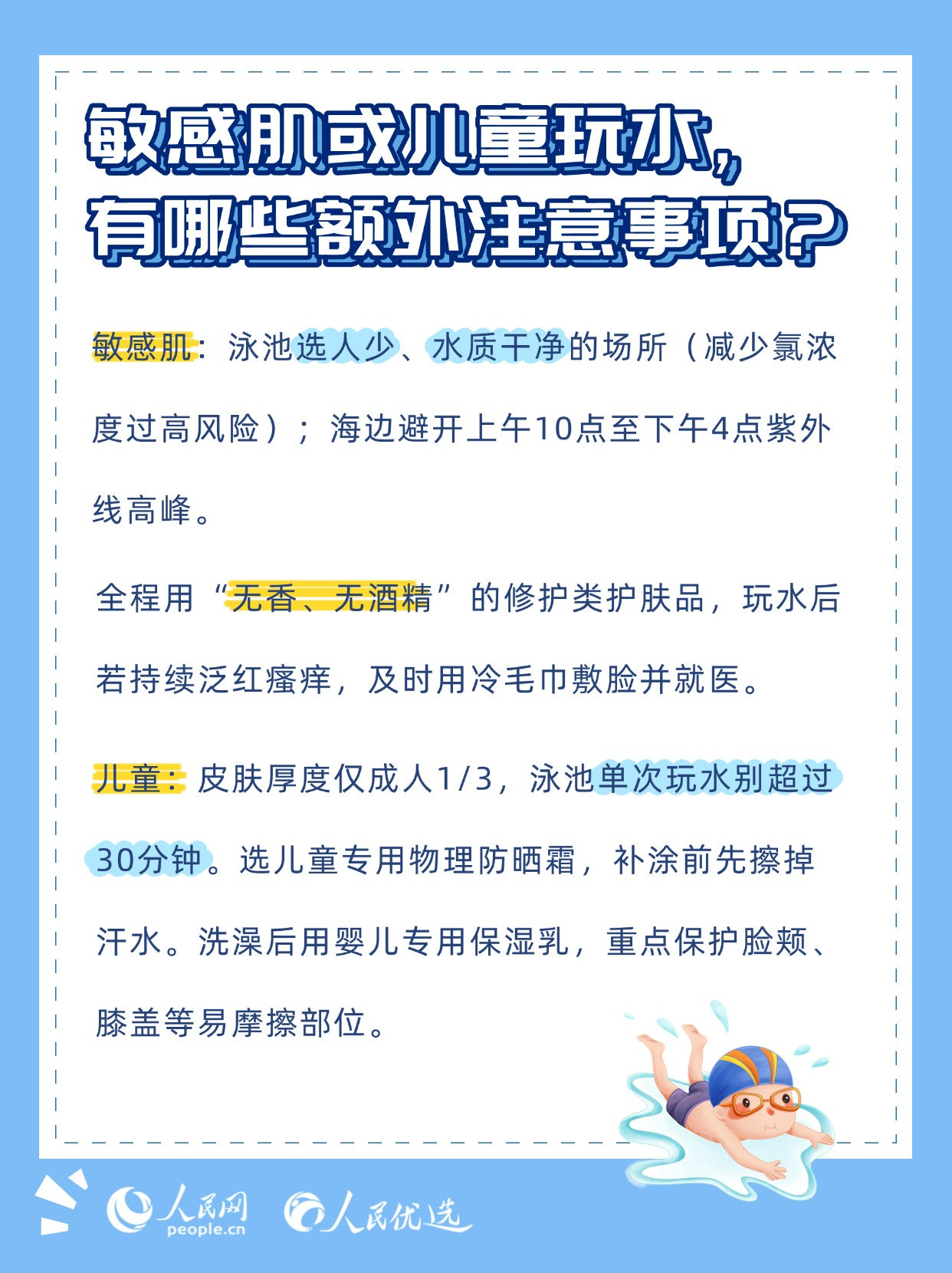 夏日炎炎,無(wú)論是泳池里的清涼暢游,還是海邊的逐浪嬉戲,都是驅(qū)散暑氣的不錯(cuò)選擇。但玩水的快樂背后,卻藏著不少傷害皮膚的“陷阱”——泳池的消毒劑、海邊的強(qiáng)紫外線、海水中的高鹽分,稍有不慎就可能引發(fā)皮膚干燥、泛紅、曬黑、長(zhǎng)斑甚至?xí)駛1酒凇度嗣駜?yōu)選來(lái)了》教你掌握科學(xué)的護(hù)膚方法,讓你在享受玩水樂趣的同時(shí),保持健康的肌膚狀態(tài)。