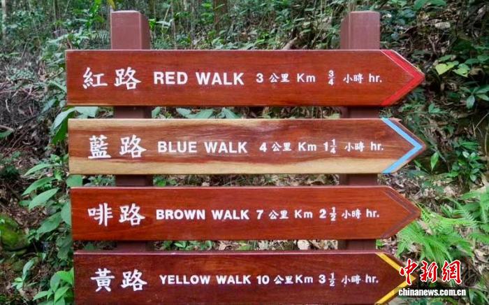 資料圖:中國(guó)香港,一處郊野公園的路徑指示牌清晰醒目,方便徒步者選擇。中新網(wǎng)記者 孫自法 攝