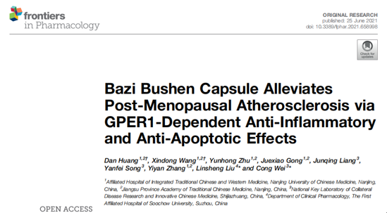 近日,南京中醫(yī)藥大學(xué)附屬中西醫(yī)結(jié)合醫(yī)院黃丹博士關(guān)于“八子補(bǔ)腎膠囊通過抗炎和抗凋亡作用減輕絕經(jīng)后粥樣動脈硬化”研究,6月25日發(fā)表在國際學(xué)術(shù)期刊《Frontiers in Psychology》上(影響因子為5.810)。