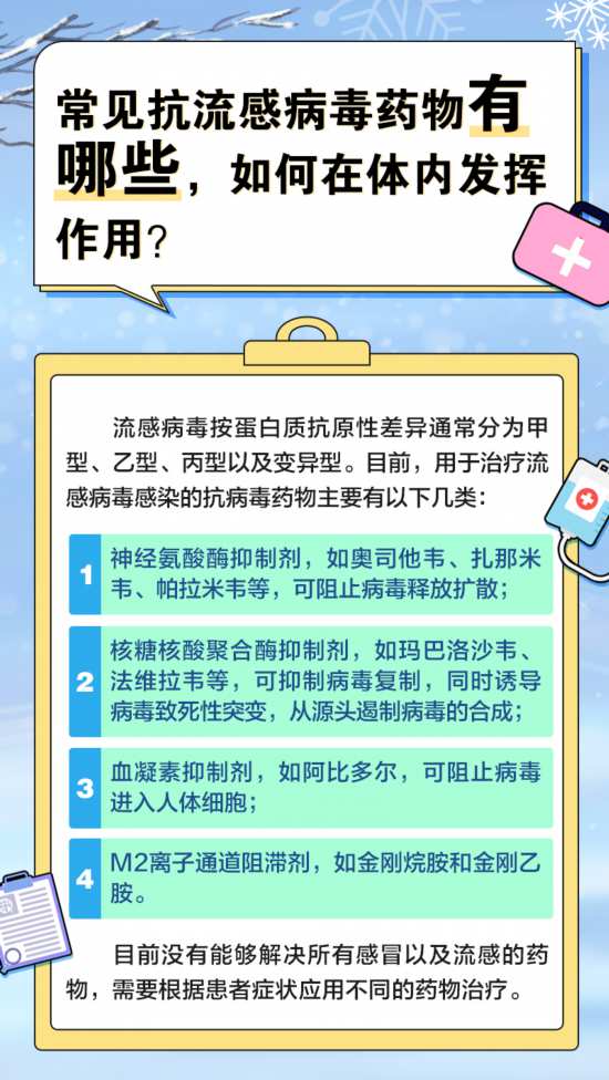 冬季氣溫驟降,流感來勢洶洶。流感是一種由流感病毒引起的急性呼吸道傳染病,在人群中有較高的發(fā)病率。流感患者通常會出現(xiàn)發(fā)熱、咳嗽或咽痛等癥狀。部分癥狀較重的患者還會感到頭痛、惡心、肌肉酸痛,甚至出現(xiàn)肺炎等并發(fā)癥,需要及時就醫(yī)用藥治療。那么,常見的抗流感藥物有哪些?抗病毒藥物治療的最佳時間是什么?怎樣服藥更科學有效?本期請到中國醫(yī)科大學附屬第一醫(yī)院感染性疾病一科主任張靜萍教授為大家解疑釋惑。