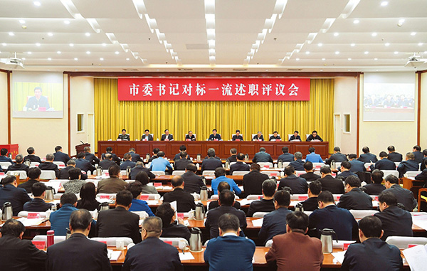 圖為市委書記對(duì)標(biāo)一流述職評(píng)議會(huì)會(huì)場(chǎng)。 本報(bào)記者 李聯(lián)軍攝