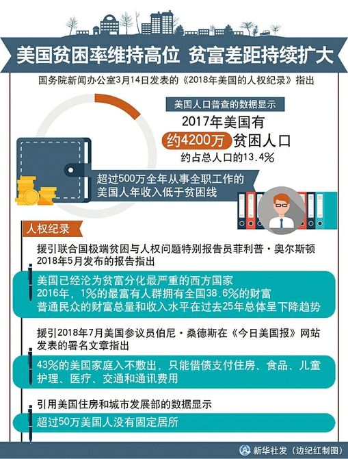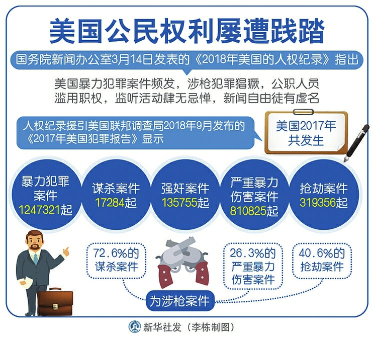 國務(wù)院新聞辦公室14日發(fā)表《2018年美國的人權(quán)紀(jì)錄》《2018年美國侵犯人權(quán)事記》,對美國侵犯人權(quán)的狀況進行揭露。