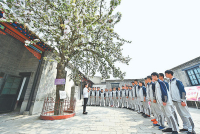 4月4日,河北省南宮市豐翼中學學生來到八路軍129師東進縱隊司令部舊址,開展憶英烈活動。