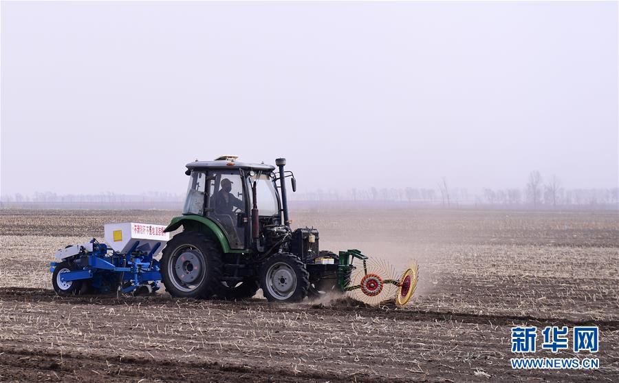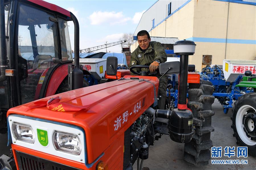 在榆樹市環(huán)城鄉(xiāng),農(nóng)民高春雨在檢修農(nóng)機(4月19日攝)。新華社記者 張楠 攝