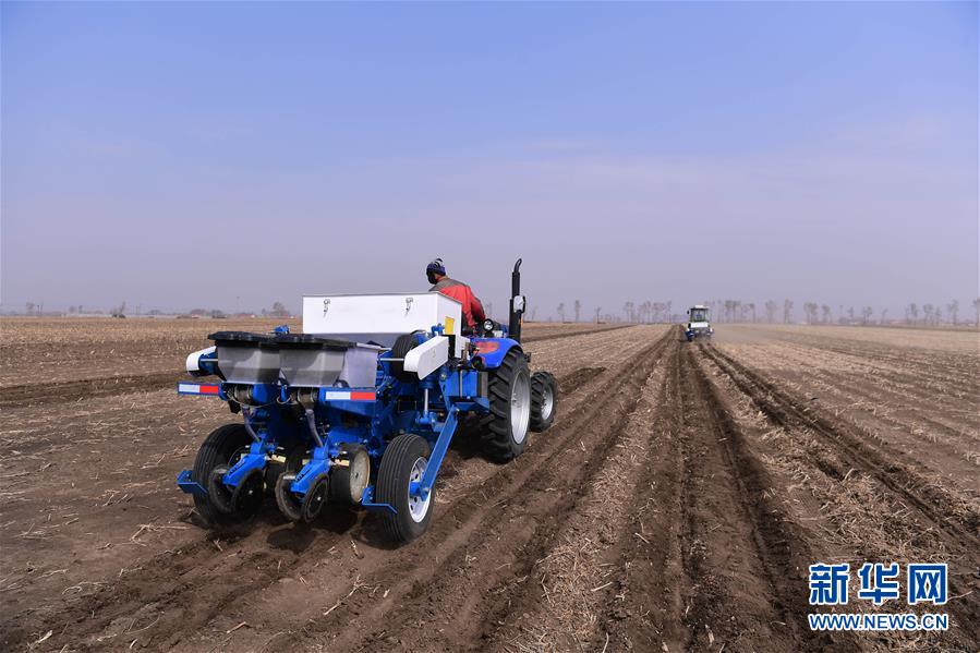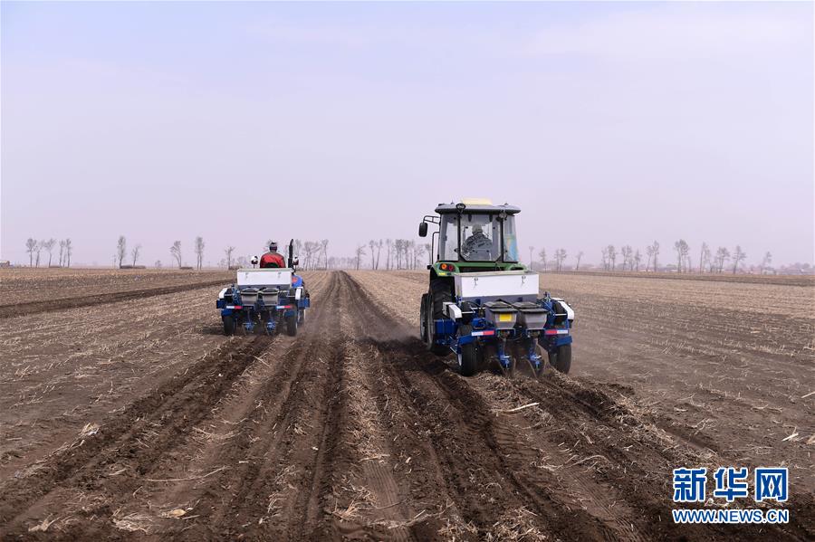 4月23日,吉林省榆樹市弓棚鎮(zhèn)農(nóng)民在播種玉米。 新華社記者 林宏 攝