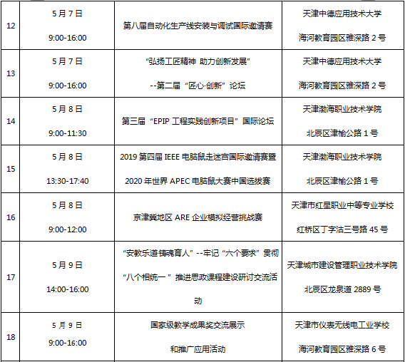 附:2019年全國職業(yè)院校技能大賽主賽場(chǎng)(天津)重點(diǎn)活動(dòng)安排