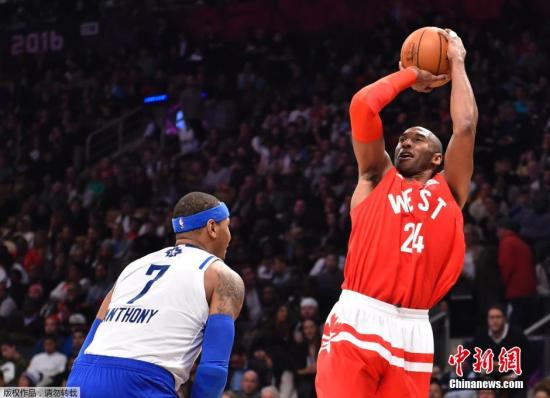 2月15日,2016NBA全明星正賽在多倫多開打,科比·布萊恩特的最后一次全明星賽以勝利而結束,西部以196-173大勝東部,西部創(chuàng)下了全明星賽得分紀錄,兩隊總得分也刷新了去年創(chuàng)下的紀錄。圖為科比跳投。
