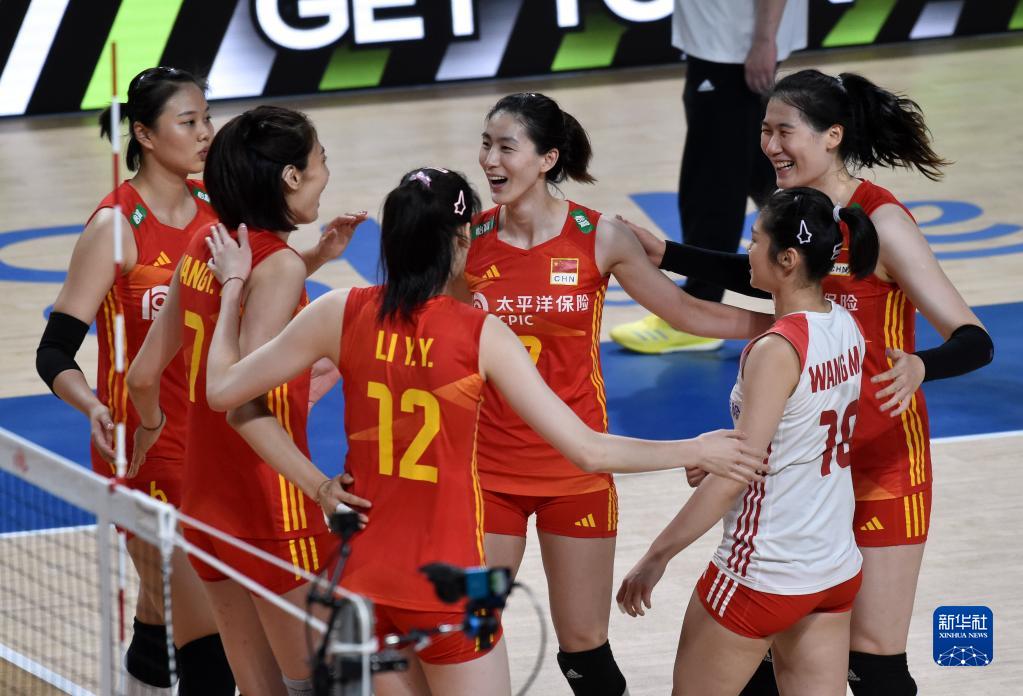 6月13日,中國隊球員慶祝得分。新華社記者盧炳輝攝