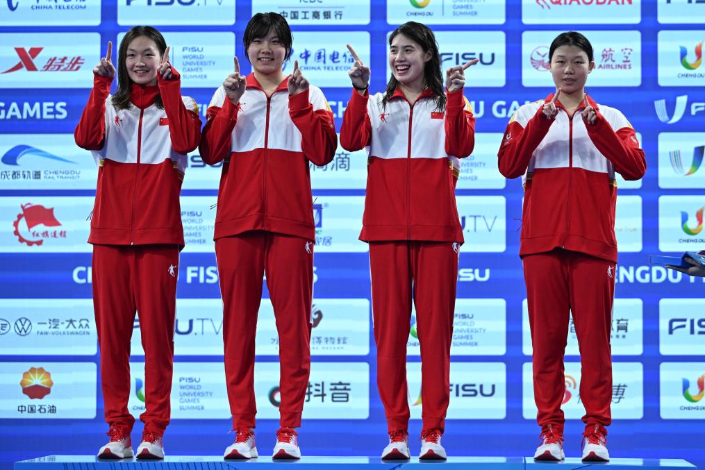 從日本福岡世錦賽凱旋的世界“蛙王”覃海洋和“蝶后”張雨霏當(dāng)天凌晨才到成都,隨即刷新男子100米蛙泳和女子50米蝶泳的賽會紀(jì)錄。張雨霏還率領(lǐng)中國隊(duì)以3分37秒51的成績創(chuàng)造了女子4x100米自由泳接力賽會紀(jì)錄,開啟成都大運(yùn)會游泳奪金之旅。