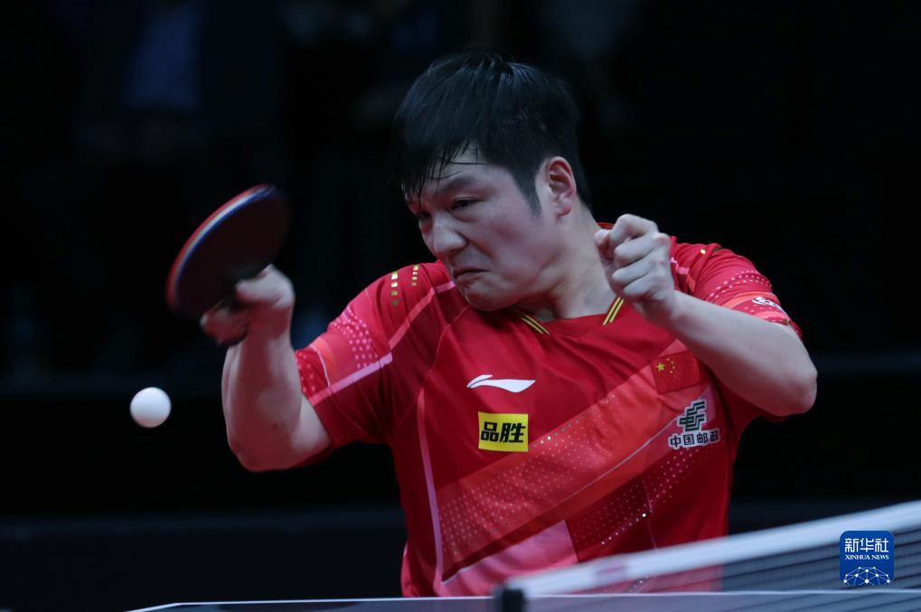 9月10日,樊振東在比賽中回球。新華社發(fā)(李相浩攝)